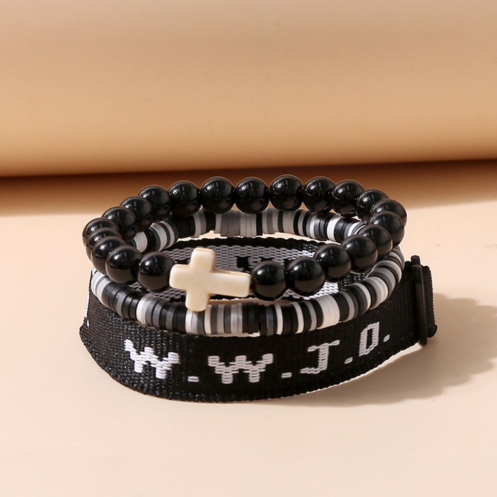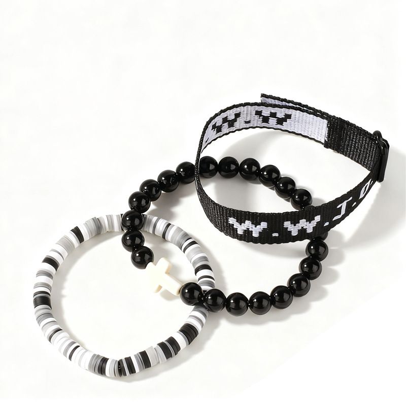 Cross-Shaped Imitation Pearl Beaded Stretch Bracelet Set